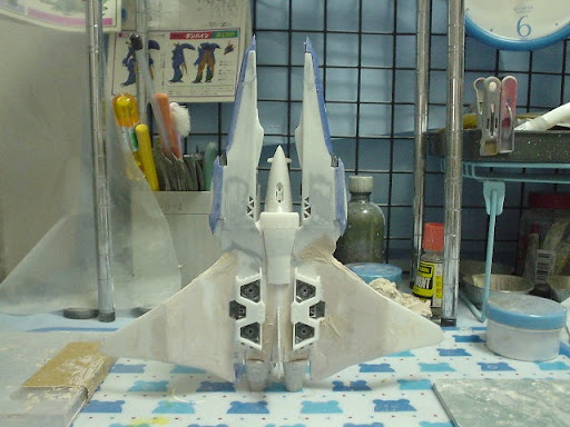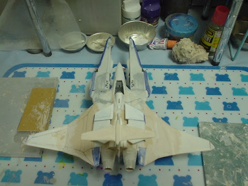 この後エンジンから機体方向に半筒状のパーツを作って、それらしく加工です。